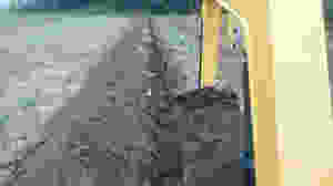 このたびの圃場。洪水前に葉っぱを切っていなかったところは、土や砂の堆積が多くて専用収穫機が機能しない。さあどうか、堆積厚3cmが境目か。これを超えると専用収穫機の有利性がなくなる。